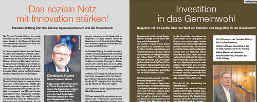 Paradies-Stiftung ehrt Prof. Christoph Sigrist und das Zürcher Spendenparlament und die Streetchurch